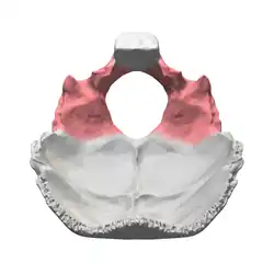 Occipital bone. Lateral parts shown in red.