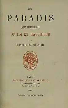 Les Paradis Artificiels (English: Artificial Paradises) is a book by French poet Charles Baudelaire, first published in 1860, about the state of being under the influence of opium and hashish. Baudelaire describes the effects of the drugs and discusses the way in which they could theoretically aid mankind in reaching an "ideal" world. The text was influenced by Thomas De Quincey's Confessions of an English Opium-Eater and Suspiria de Profundis.[1]