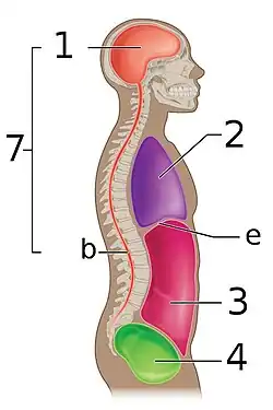 ![]() The various cavities of the human body as seen in a frontal projection, with the pelvic cavity labeled 4. | |