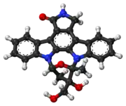 Lestaurtinib (rINN, codenamed CEP-701) is a tyrosine kinase inhibitor structurally related to staurosporine. This semisynthetic derivative of the indolocarbazole K252a was investigated by Cephalon as a treatment for various types of cancer.[1] It is an inhibitor of the kinases fms-like tyrosine kinase 3 (FLT3),[2] Janus kinase 2 (JAK2),[3] tropomyosin receptor kinase (trk) A (TrkA), TrkB and TrkC.[4]
