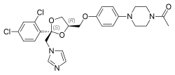 Levoketoconazole is the levorotatory or (2S,4R) enantiomer of ketoconazole,[4][5][6] and it is an inhibitor of the enzymes CYP11B1 (11β-hydroxylase), CYP17A1 (17α-hydroxylase/17,20-lyase), and CYP21A2 (21-hydroxylase).[3][4][6] It inhibits glucocorticoid biosynthesis and hence circulating levels of glucocorticoids, thereby treating Cushing's syndrome.[3][6] In addition to its increased potency, the drug is 12-fold less potent than racemic ketoconazole in inhibiting CYP7A1 (cholesterol 7α-hydroxylase), theoretically resulting in further reduced interference with bile acid production and metabolite elimination and therefore less risk of hepatotoxicity.[6] Levoketoconazole has also been found to inhibit CYP11A1 (cholesterol side-chain cleavage enzyme) and CYP51A1 (lanosterol-14α-demethylase), similarly but more potently relative to ketoconazole.[9]