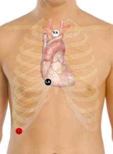Electrode placement for Lewis lead; RL electrode (green), not shown, remains on leg