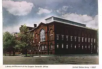The Army Medical Museum and Library building housed the US Army's medical library from 1887 until 1956. "Old Red", as it was affectionately known, was located on the National Mall in Washington, DC. It was razed in 1969.
