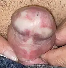 - ↑ Lewis, F.M.; Tatnall, F.M.; Velangi, S.S.; Bunker, C.B.; Kumar, A.; Brackenbury, F.; Mohd Mustapa, M.F.; Exton, L.S.; McHenry, P.M.; Leslie, T.A.; Wakelin, S.; Hunasehally, R.Y.P.; Cork, M.; Johnston, G.A.; Chiang, N.; Worsnop, F.S.; Buckley, D.; Petrof, G.; Salin, A.; Callachand, N.; Saunders, C.; Salad, A.A. (April 2018). "British Association of Dermatologists guidelines for the management of lichen sclerosus, 2018". British Journal of Dermatology. 178 (4): 839–853. doi:10.1111/bjd.16241. PMID 29313888. S2CID 3416734.