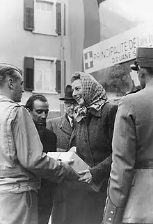The LRK was initially formed to care for the 7,000 war refugees that had crossed into Liechtenstein in the closing weeks and following World War II, where it provided soup kitchens and bathing services for them near Schaanwald, while calling the population of Liechtenstein to donate towards aiding the refugees.[1][3] Most notably, it cared for soldiers of the pro-Axis First Russian National Army when they took refuge in the country near the end of the war.[4] It also provided assistance in neighbouring Allied-occupied Austria and was later expanded to domestic coverage.[3] Domestically, in 1946 a mother's advice centre was established, in 1948 the LRK expanded to cover family welfare until 1996 and in 1956 a children's home was opened in Triesen, which was later moved to Schaan in 1965.[3][5] The organisation has offered blood donations since 1953 and has operated rescue services since 1972.[3] The organisation has also come out in support of greater action to combat climate change.[6]