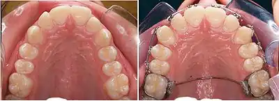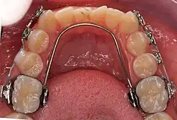 - ↑ Brennan, MM; Gianelly, AA (January 2000). "The use of the lingual arch in the mixed dentition to resolve incisor crowding". Am J Orthod Dentofacial Orthop. 117 (1): 81–5. doi:10.1016/s0889-5406(00)70252-6. PMID 10629524.