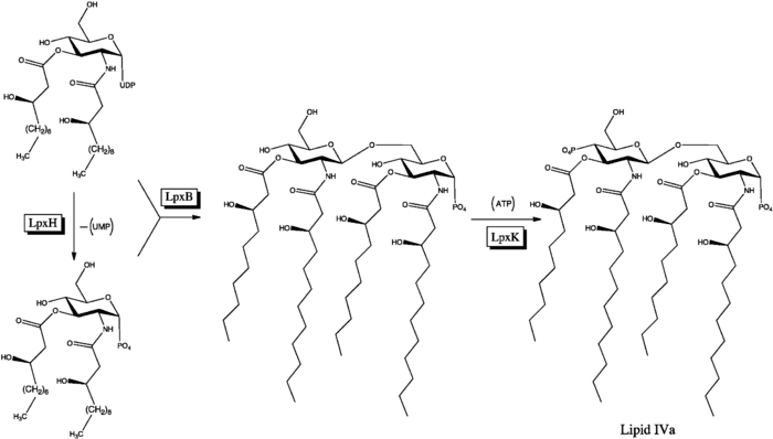 The enzymes involved in Lipid A synthesis are conserved among Pseudomonas aeruginosa, Escherichia coli, Bordetella bronchiseptica, and Salmonella.[4]