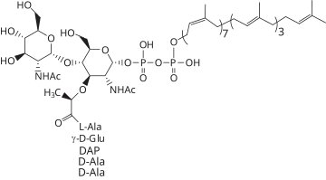 - ↑ Qiao Y, Srisuknimit V, Rubino F, Schaefer K, Nuiz R, Walker S, Kahne D (2017). "Lipid II overproduction allows direct assay of transpeptidase inhibition by b-lactams". Nature Chemical Biology. 13 (7): 793–798. doi:10.1038/nchembio.2388. PMC 5478438. PMID 28553948.