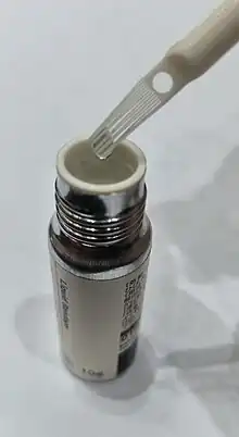 Liquid bandage is a topical skin treatment for minor wounds which binds to the skin to form a protective polymeric layer that keeps dirt and germs out and moisture in.[1] It can be directly applied to the wound after removing debris.