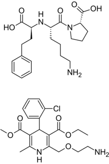 ![]() Lisinopril (top) and amlodipine (bottom) | |