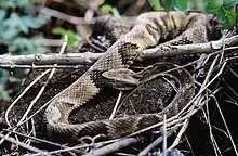 - ↑ Brown WS (1991). "Female Reproductive Ecology in a Northern Population of the Timber Rattlesnake, Crotalus horridus". Herpetologica. 47 (1): 101–115. JSTOR 3892821.
