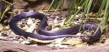 The common death adder (Acanthophis antarcticus) is a highly venomous snake species with a 50–60% untreated mortality rate.[87] It is also the fastest striking venomous snake in the world.[88] A death adder can go from a strike position, to strike and envenoming their prey, and back to strike position again, in less than 0.15 seconds.[88] The SC LD50 value is 0.4 mg/kg[89] and the venom yield per bite can range anywhere from 70–236 mg.[90] Unlike other snakes that flee from approaching humans crashing through the undergrowth, common death adders are more likely to sit tight and risk being stepped on, making them more dangerous to the unwary bushwalker. They are said to be reluctant to bite unless actually touched.[91]