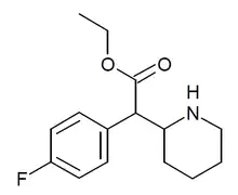 This is a list of methylphenidate (MPH or MPD) analogues, or Phenidates. The most well known compound from this family, methylphenidate, is widely prescribed around the world for the treatment of attention deficit hyperactivity disorder (ADHD) and certain other indications. Several other derivatives including rimiterol, phacetoperane and pipradrol also have more limited medical application. A rather larger number of these compounds have been sold in recent years as designer drugs, either as quasi-legal substitutes for illicit stimulants such as methamphetamine or cocaine, or as purported "study drugs" or nootropics.[1][2][3]