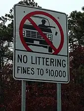 - ↑ "Littering Information". Archived from the original on October 6, 2012. Retrieved 2013-02-03.