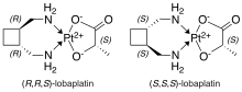The structure of lobaplatin (1,2-diammino-methyl-cyclobutane-platinum (II) lactate) consists of a platinum(II) metal center coordinated to a bidentate amine ligand (1,2-bis(aminomethyl)cyclobutane) and a lactic acid leaving group.[2] Lobaplatin is administered intravenously by bolus injection or infusion and composed of an approximate 50/50 mixture of two diastereoisomers, R,R,S- and S,S,S-configurations.[3]