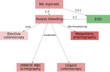 - ↑ Velayos, FS; Williamson, A; Sousa, KH; Lung, E; Bostrom, A; Weber, EJ; Ostroff, JW; Terdiman, JP (June 2004). "Early predictors of severe lower gastrointestinal bleeding and adverse outcomes: a prospective study". Clinical Gastroenterology and Hepatology. 2 (6): 485–90. doi:10.1016/s1542-3565(04)00167-3. PMID 15181617.