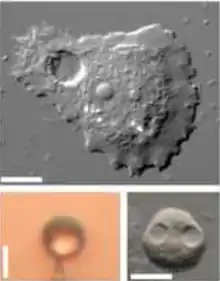 - ↑ Tice AK, Shadwick LL, Fiore-Donno AM, et al. (2016). "Expansion of the molecular and morphological diversity of Acanthamoebidae (Centramoebida, Amoebozoa) and identification of a novel life cycle type within the group". Biol Direct. 11: 69. doi:10.1186/s13062-016-0171-0. PMC 5192571. S2CID 206983821.