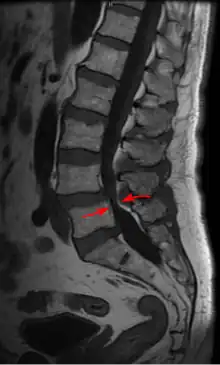 - ↑ Cousins JP, Haughton VM (January 2009). "Magnetic resonance imaging of the spine". The Journal of the American Academy of Orthopaedic Surgeons. 17 (1): 22–30. doi:10.5435/00124635-200901000-00004. PMID 19136424. S2CID 3052746.