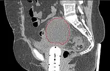 A lymphocele is a collection of lymphatic fluid within the body not bordered by epithelial lining.[1] It is usually a surgical complication seen after extensive pelvic surgery (such as cancer surgery) and is most commonly found in the retroperitoneal space. Spontaneous development is rare.[2]