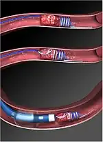 The retriever consists of a long thin wire with a helical coil formed at the distal end. A balloon catheter is snaked into the affected vessel from the femoral artery, and the balloon is inflated to prevent blood flow that could hinder the retrieval process. The retriever is then fed through the catheter, during which the distal coil is straightened to fit through the catheter tube. When the retriever emerges at the clot site, the coil reforms, wrapping around the clot and allowing the clot to be removed with the catheter.[3]