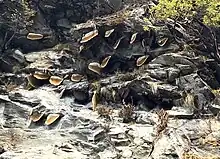 Apis laboriosa populations in Nepal have experienced dramatic declines due to overharvesting, hydroelectric dam and road construction, and the loss of water sources.[16] Population decline is also attributed to deforestation and landslides.[15] In Nepal, there has been an annual 70% decline in honeybee populations in Himalayan cliffs.[18] A specialist with the International Centre for Integrated Mountain Development reported in 2022 that there had been a decrease both in the number of cliffs that host bees and in the number of colonies each cliff supports. Recommendations for sustainable honey harvesting include leaving half of the newly formed combs undisturbed and only harvesting portions of the combs.[16]