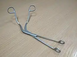 Magill forceps are angled forceps used to guide a tracheal tube into the larynx or a nasogastric tube into the esophagus under direct vision.[1] They are also used to remove foreign bodies.[1] These forceps are named after the Irish-born anaesthetist Ivan Magill.[1]