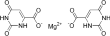 Magnesium orotate, the magnesium salt of orotic acid, is a mineral supplement. It can be used in treating extracellular magnesium deficiency, as well as in mitigating magnesium depletion that inhibits the binding of adenosine triphosphate via orotic acid, which provides binding sites.[1]