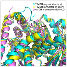 - ↑ Waldman AD, Hart KW, Clarke AR, Wigley DB, Barstow DA, Atkinson T, Chia WN, Holbrook JJ (January 1988). "The use of genetically engineered tryptophan to identify the movement of a domain of B. stearothermophilus lactate dehydrogenase with the process which limits the steady-state turnover of the enzyme". Biochemical and Biophysical Research Communications. 150 (2): 752–9. doi:10.1016/0006-291X(88)90455-X. PMID 3422557.