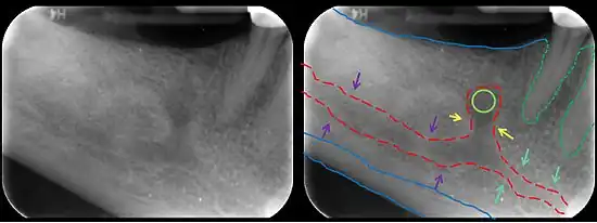 - ↑ Mizbah, K.; Gerlach, N.; Maal, T. J.; Bergé, S. J.; Meijer, Gert J. (March 2012). "The clinical relevance of bifid and trifid mandibular canals". Oral and Maxillofacial Surgery. 16 (1): 147–151. doi:10.1007/s10006-011-0278-5. ISSN 1865-1550. PMC 3294215. PMID 21698363.