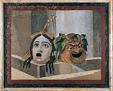 Performers with masks. Mosaic. House of the Tragic Poet, Pompeii