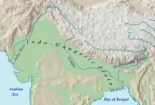 The Indo-Gangetic Region and central Indian region consists of the 13 states of Bihar, Chhattisgarh, Delhi, Gujarat, Haryana, Jharkhand, Madhya Pradesh, Punjab, Rajasthan, Uttar Pradesh, West Bengal, and Chandigarh. These are the most populous region of India, with a combined total of almost 900 million people. Geographically, the area is defined by Outer Himalays (Siwalik Mountains) to the north, the sprawling Indo-Gangetic plain in the middle, and the more rugged central India. Central India consists of hills, a portion of the Deccan plateau, and the Aravalli and Satpura mountains. Flat coastal predominates in most of West Bengal. The Western border with Pakistan features the Thar desert, more than half of which lies within Rajasthan.[41]