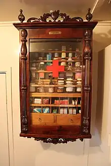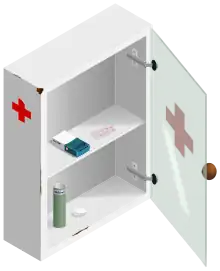 A medicine cabinet is a cabinet used to store medications and other hygiene products.[1] They are often locked and placed high enough such that it can not be accessed by small children. Medicine cabinets can be placed in many different places depending on the intended use and available space, and can for instance be found in workshops, bathrooms or hallways. Non-lockable bathroom cabinets are sometimes used as improvised medicine cabinets.