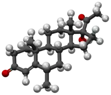 Medroxyprogesterone, also known as 6α-methyl-17α-hydroxyprogesterone or as 6α-methyl-17α-hydroxypregn-4-en-3,20-dione, is a synthetic pregnane steroid and a derivative of progesterone.[2][3] It is specifically a derivative of 17α-hydroxyprogesterone with a methyl group at the C6α position.[2][3] The generic name of medroxyprogesterone is a contraction of 6α-methyl-17α-hydroxyprogesterone. It is closely related to medrogestone as well as other unesterified 17α-hydroxyprogesterone derivatives such as chlormadinone, cyproterone, and megestrol.[2][3]