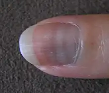 Mees' lines appear after an episode of poisoning with arsenic,[2] thallium or other heavy metals or selenium,[3] opioid MT-45, and can also appear if the subject is suffering from kidney failure.[4] They have been observed in chemotherapy patients.[5]