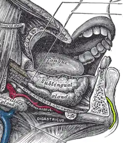 ![]() Plane of dissection that would create the mental space, highlighted in green, between the mentalis and the platysma muscles. | |