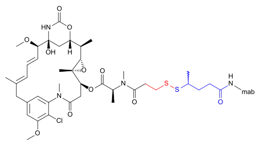 The following (experimental) drugs are antibody-drug conjugates (ADC) combining monoclonal antibodies with mertansine as the cytotoxic component. Mertansine is linked via 4-mercaptovaleric acid.[3]