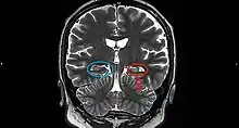 Hippocampal sclerosis (HS) or mesial temporal sclerosis (MTS) is a neuropathological condition with severe neuronal cell loss and gliosis in the hippocampus.[1] Neuroimaging tests such as magnetic resonance imaging (MRI) and positron emission tomography (PET) may identify individuals with hippocampal sclerosis.[2] Hippocampal sclerosis occurs in 3 distinct settings: mesial temporal lobe epilepsy, adult neurodegenerative disease and acute brain injury.[2][3]: 1503