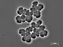 Methanosarcinales is an order of Archaea in the class Methanomicrobia, phylum Methanobacteriota.[1] The order Methanosarcinales contains both methanogenic and methanotrophic lineages, although the latter have so far no pure culture representatives.[2] Methanotrophic lineages of the order Methanosarcinales were initially abbreviated as ANME (anaerobic methanotrophs) to distinguich from aerobic methanotrophic bacteria. Currently, those lineages receive their own names such as Ca. Methanoperedens, Ca. Methanocomedens (ANME-2a), Ca.Methanomarinus (ANME-2b), Ca. Methanogaster (ANME-2c), Ca. Methanovorans (ANME-3).[3] The order contains archaeon with one of the largest genome, Methanosarcina acetivorans C2A, genome size 5,75 Mbp.[4]