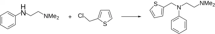 Methaphenilene can be synthesized from N,N-dimethyl-N′-phenylethane-1,2-diamine by alkylation with 2-(chloromethyl)thiophene.[1]