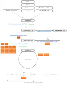 - ↑ Villani GR, Gallo G, Scolamiero E, Salvatore F, Ruoppolo M (August 2017). ""Classical organic acidurias": diagnosis and pathogenesis". Clinical and Experimental Medicine. 17 (3): 305–323. doi:10.1007/s10238-016-0435-0. PMID 27613073.