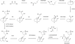 Biosynthesis of mevastatin is primarily accomplished via a type 1 PKS pathway it proceeds in the PKS pathway as seen in figure 1 until it reaches a hexaketide state where it undergoes a Diels-Alder cyclization. After cyclization it continues via the PKS pathway to a nonaketide after which it is released and undergoes oxidation and dehydration. It is presumed that the oxidations are preformed by a polypeptide that is similar to cytochrome p450 monooxygenase, which is encoded by mlcC within the mevastatin gene. Lastly the biosynthesis is completed by the PKS facilitating the addition of a diketide sidechain and a methylation by SAM.[7] Figure 1 shows mevastatin in its acid form but it can also be in the more commonly seen lactone form. This pathway was first observed in Penicillium cilrinum and was later discovered that another type of fungus, Penicillium brevicompaetum also produced mevastatin via a PKS pathway.