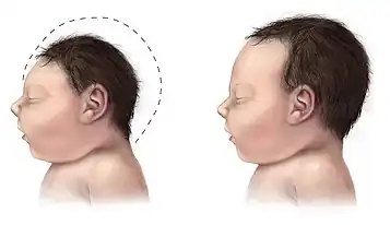 | A baby with microcephaly (left) compared to a baby with a typical head size | |