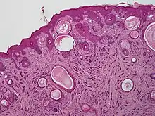 - 1 2 3 4 Hamed, Nouran S.; Khachemoune, Amor (2015-07-01). "Microcystic adnexal carcinoma: A focused review and updates". Journal of Dermatology & Dermatologic Surgery. 19 (2): 80–85. doi:10.1016/j.jdds.2015.03.001. ISSN 2352-2410.