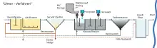 Another relevant factor is the danger posed by the spread of multi-resistant bacteria. There are two possible ways in which this can happen through wastewater. Firstly, by transporting already resistant strains into the receiving water due to inadequate treatment technology. The other possibility is the development of resistant cultures in the environment by introducing antibiotics into the water body. Preventing the entry of bacteria has long been used as a form of hygienic treatment using UV light or ozone, especially if the water is to be reused. Membrane systems such as membrane bioreactors or downstream ultrafiltration also serve this purpose.[8] Depending on the intensity and technology, some micropollutants are also removed in addition to the bacteria. The extent to which membrane technologies with low energy consumption are able to deplete trace substances is being investigated.