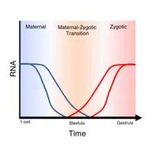 - 1 2 3 Kane D, Kimmel C (1993). "The zebrafish midblastula transition". Development. 119 (2): 447–456. doi:10.1242/dev.119.2.447. PMID 8287796.