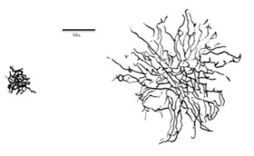 ![]() A sketch of a parasol cell (right) alongside a midget cell (left) for size comparison | |