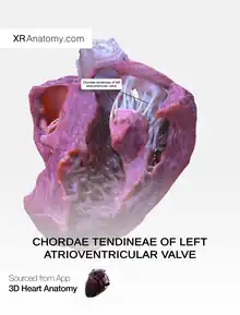 - ↑ Nazari S, Carli F, Salvi S, et al. (Apr 2000). "Patterns of systolic stress distribution on mitral valve anterior leaflet chordal apparatus. A structural mechanical theoretical analysis". J Cardiovasc Surg (Torino). 41 (2): 193–202. PMID 10901521.