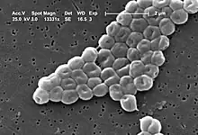 The Moraxellaceae are a family of Gammaproteobacteria, including a few pathogenic species.[1] Others are harmless commensals of mammals and humans or occur in water or soil. The species are mesophilic or psychrotrophic (Psychrobacter).[2]