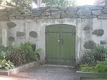 Latin phrase "de mortuis nihil nisi bene" ("Of the dead, say nothing but good") written at the old morgue of Eura Church in Eura, Finland