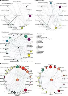 Ethnic inequalities also affect who acquires multimorbidity.[75][76][77] In the United Kingdom, Indian, Pakistani, Bangladeshi, Black African, Black Caribbean people and those who identify as Black other, other Asian, and mixed ethnicity have a higher risk of developing multiple long-term conditions. In England, people from Pakistani and Bangladeshi backgrounds have the highest multimorbidity rates and they are twice as likely than people from the Chinese minority to have multimorbidity.[65][78] Pakistani, Black African, Black Caribbean and other black ethnic groups in England are also significantly more likely to die due to having multiple long-term conditions.[79]